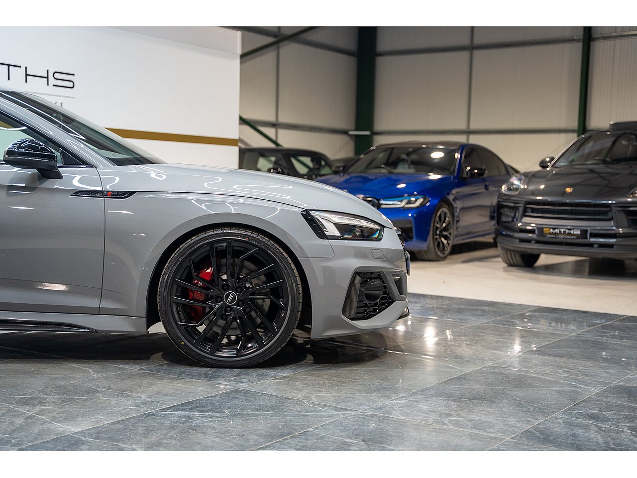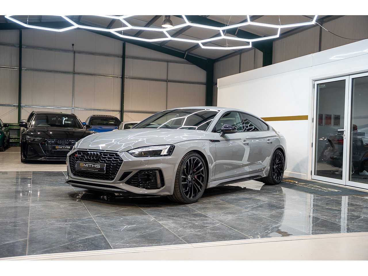 Just into stock is this stunning example of a 2022 Audi RS5 2.9 TFSI V6 Carbon Black Sportback, finished in the iconic Nardo Grey. With just 39,000 miles on the clock, this high performance vehicle is in superb condition & boasts an impressive spec. Equipped with the Comfort & Sound Package, Storage & Luggage Compartment Package & a Rear View Camera, this RS5 offers both practicality & cutting edge technology. The Carbon Black Styling Pack & RS Exhaust System elevate its aggressive, yet sophisticated appearance, while providing an exhilarating driving experience. The car comes with a Full Audi Service History Record & we've just completed the most recent service in house, ensuring it remains in top condition. Additionally, it has an MOT valid until January 2026, offering peace of mind for years to come. At Smiths Sports and Performance we tailor finance packages to suit you. The options available are Hire purchase (HP) and PCP (Age of vehicle dependant). These will be quoted at the most competitive market rates currently available. Please discuss the options with one of our team and we will help find the best option to suit your needs. If you have a part exchange, our buying team will value it manually according to the current market value to achieve the best possible figures to help you into your new car. All of our vehicles come with a 3 month back to base warranty & we also offer extended warranty options for optional periods, with the ability to upgrade to access manufacturer dealerships for any potential work carried out. Every car we sell is checked that it is HPI clear and then put through a workshop inspection. We service and MOT where needed and provide warranty for your peace of mind. We are open 6 days a week by appointment only. Please call to arrange a viewing. The vehicle specification displayed may not be exact for this vehicle. Please contact us to confirm the precise specifications.