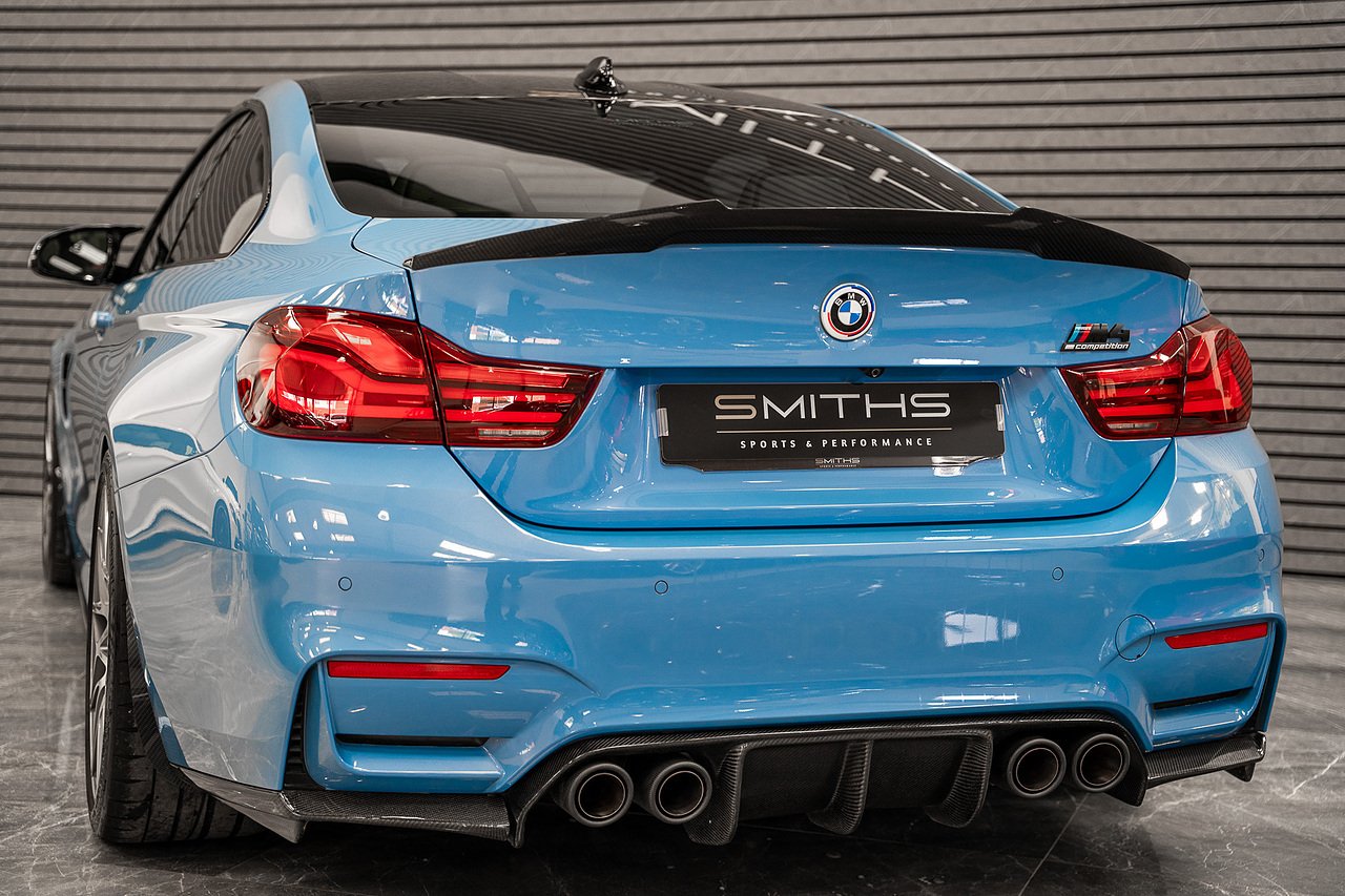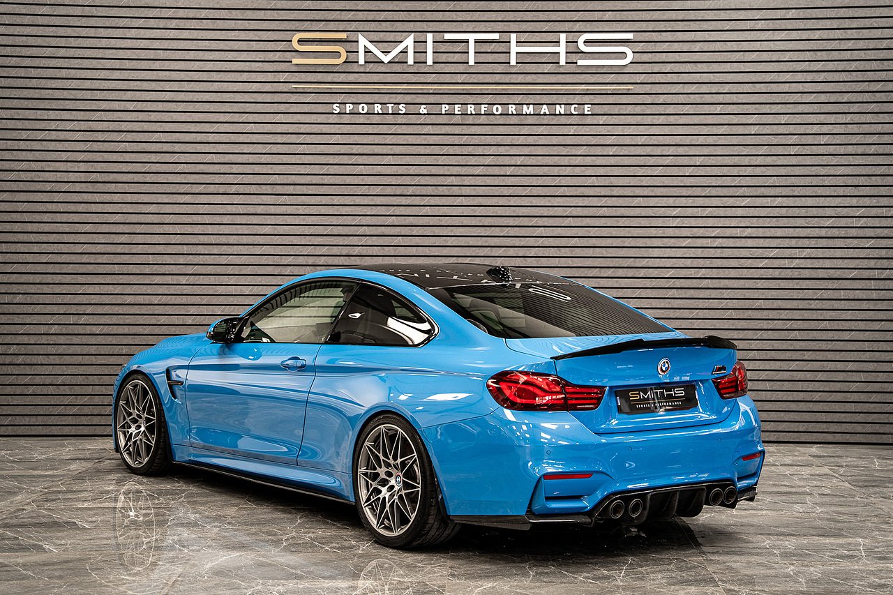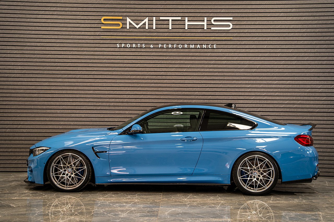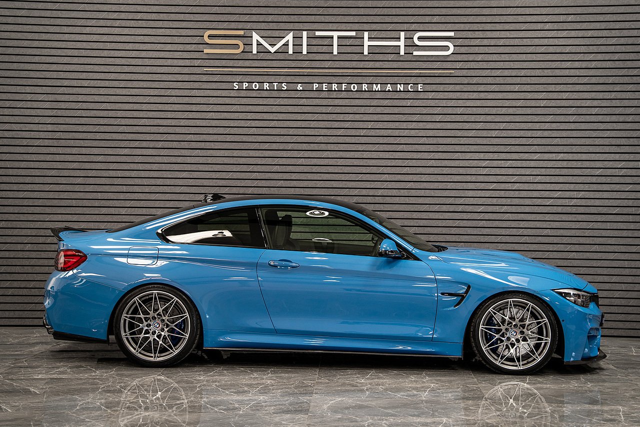Just into stock is this stunning example of a 2020 BMW M4 Competition Coupe finished in Yas Marina Blue. Excellent condition throughout with just 19990 miles on the clock! This particular example is optioned with BMW's 'Ultimate Pack'. Specification includes the Icon Adaptive LED Headlights, 360 Cameras, Harmon Kardon, M Head-Up Display, Heated Steering Wheel, Lane Assist, Cruise Control ++ The car is tastefully modified with the addition of a Milltek Cat Back Exhaust System, H&R Lowering Springs and Wheel Spacers for that perfect stance. Exterior Carbon has also been installed and looks fantastic (Splitter,Side Skirts, Spoiler & Rear Diffuser). Backed up by a fantastic service history record with all but one service being carried out by BMW. Our in house technicians have just completed a minor service and the car is MOT'd until October 2026 for peace of mind. At Smiths Sports and Performance we tailor finance packages to suit you. The options available are Hire purchase (HP) and PCP (Age of vehicle dependant). These will be quoted at the most competitive market rates currently available. Please discuss the options with one of our team and we will help find the best option to suit your needs. If you have a part exchange, our buying team will value it manually according to the current market value to achieve the best possible figures to help you into your new car. All of our vehicles come with a 3 month back to base warranty & we also offer extended warranty options for optional periods, with the ability to upgrade to access manufacturer dealerships for any potential work carried out. Every car we sell is checked that it is HPI clear and then put through a workshop inspection. We service and MOT where needed and provide warranty for your peace of mind. We are open 6 days a week by appointment only. Please call to arrange a viewing. The vehicle specification displayed may not be exact for this vehicle. Please contact us to confirm the precise specifications.