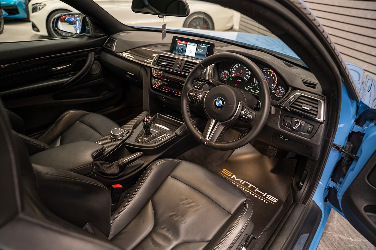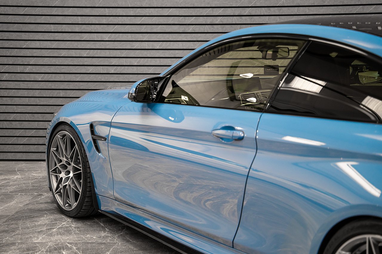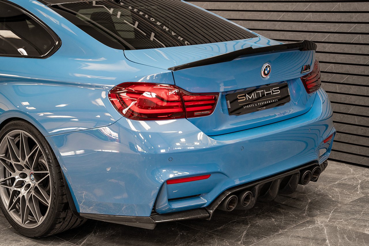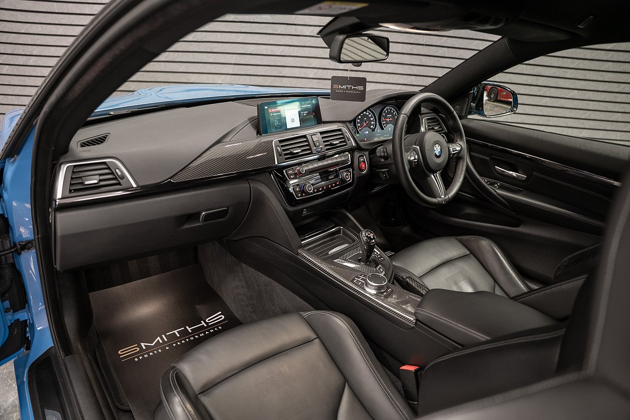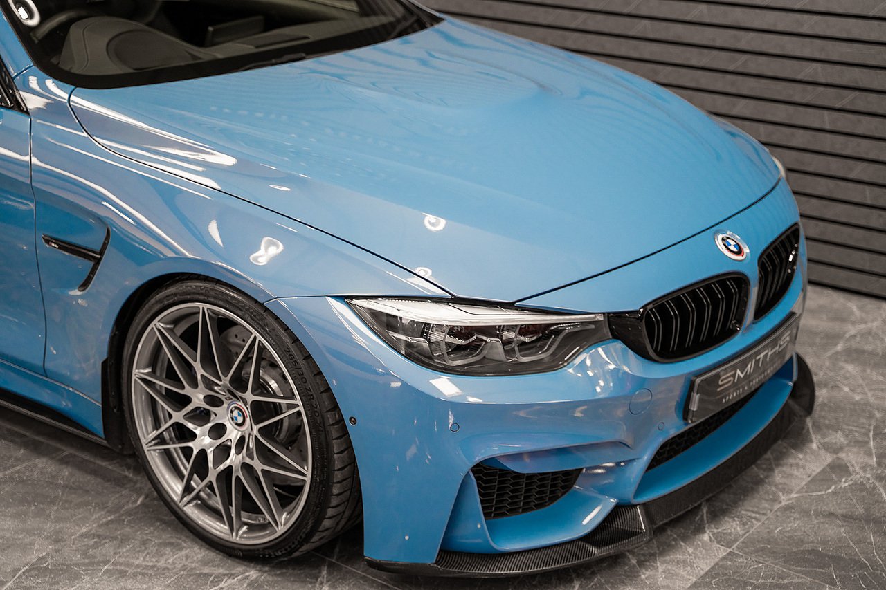 Just into stock is this stunning example of a 2020 BMW M4 Competition Coupe finished in Yas Marina Blue. Excellent condition throughout with just 19990 miles on the clock! This particular example is optioned with BMW's 'Ultimate Pack'. Specification includes the Icon Adaptive LED Headlights, 360 Cameras, Harmon Kardon, M Head-Up Display, Heated Steering Wheel, Lane Assist, Cruise Control ++ The car is tastefully modified with the addition of a Milltek Cat Back Exhaust System, H&R Lowering Springs and Wheel Spacers for that perfect stance. Exterior Carbon has also been installed and looks fantastic (Splitter,Side Skirts, Spoiler & Rear Diffuser). Backed up by a fantastic service history record with all but one service being carried out by BMW. Our in house technicians have just completed a minor service and the car is MOT'd until October 2026 for peace of mind. At Smiths Sports and Performance we tailor finance packages to suit you. The options available are Hire purchase (HP) and PCP (Age of vehicle dependant). These will be quoted at the most competitive market rates currently available. Please discuss the options with one of our team and we will help find the best option to suit your needs. If you have a part exchange, our buying team will value it manually according to the current market value to achieve the best possible figures to help you into your new car. All of our vehicles come with a 3 month back to base warranty & we also offer extended warranty options for optional periods, with the ability to upgrade to access manufacturer dealerships for any potential work carried out. Every car we sell is checked that it is HPI clear and then put through a workshop inspection. We service and MOT where needed and provide warranty for your peace of mind. We are open 6 days a week by appointment only. Please call to arrange a viewing. The vehicle specification displayed may not be exact for this vehicle. Please contact us to confirm the precise specifications.