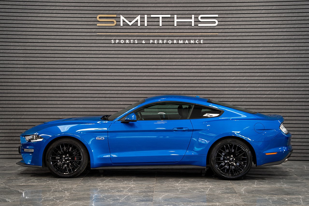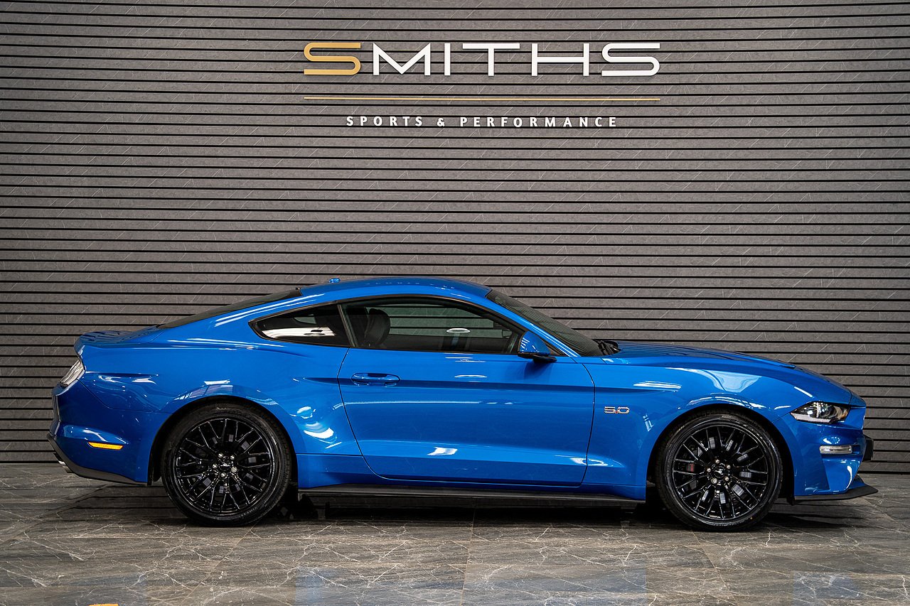 Just into stock is this stunning example of a 2019 (69) Ford Mustang GT Coupe finished in Velocity Blue. Excellent condition throughout with just 34,000 miles on the clock. Optioned with the Custom Pack 2 that includes B&O Sound System, Adaptive Cruise Control, Lane Assist, Heated Steering Wheel and Heated Front Screen. The Ventilated seats package is also ticked that includes heated & cooled seats. Serviced by Ford less than 250 miles ago and MOT'd until December 2026 for peace of mind. The vehicle is backed up by an excellent service history record At Smiths Sports and Performance we tailor finance packages to suit you. The options available are Hire purchase (HP) and PCP (Age of vehicle dependant). These will be quoted at the most competitive market rates currently available. Please discuss the options with one of our team and we will help find the best option to suit your needs. If you have a part exchange, our buying team will value it manually according to the current market value to achieve the best possible figures to help you into your new car. All of our vehicles come with a 3 month back to base warranty & we also offer extended warranty options for optional periods, with the ability to upgrade to access manufacturer dealerships for any potential work carried out. Every car we sell is checked that it is HPI clear and then put through a workshop inspection. We service and MOT where needed and provide warranty for your peace of mind. We are open 6 days a week by appointment only. Please call to arrange a viewing. The vehicle specification displayed may not be exact for this vehicle. Please contact us to confirm the precise specifications.