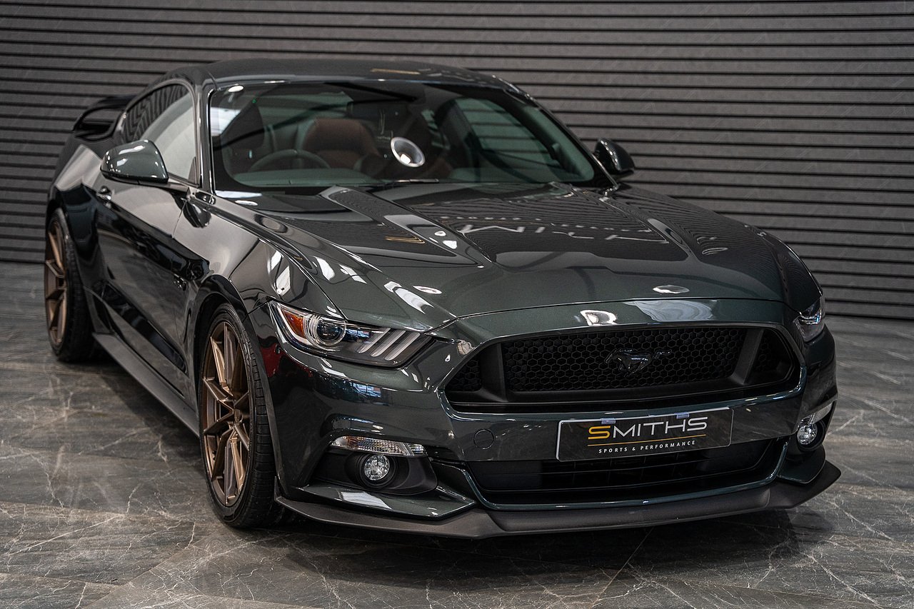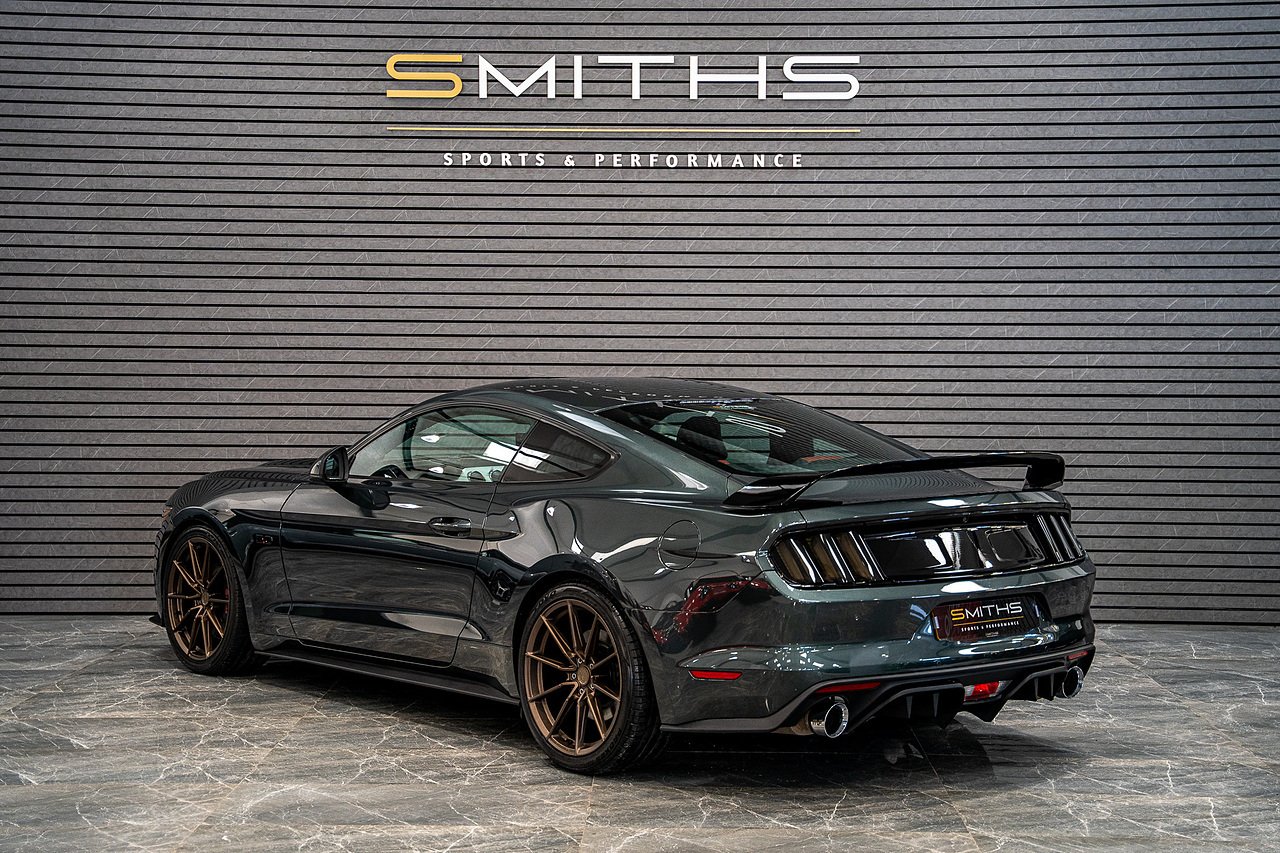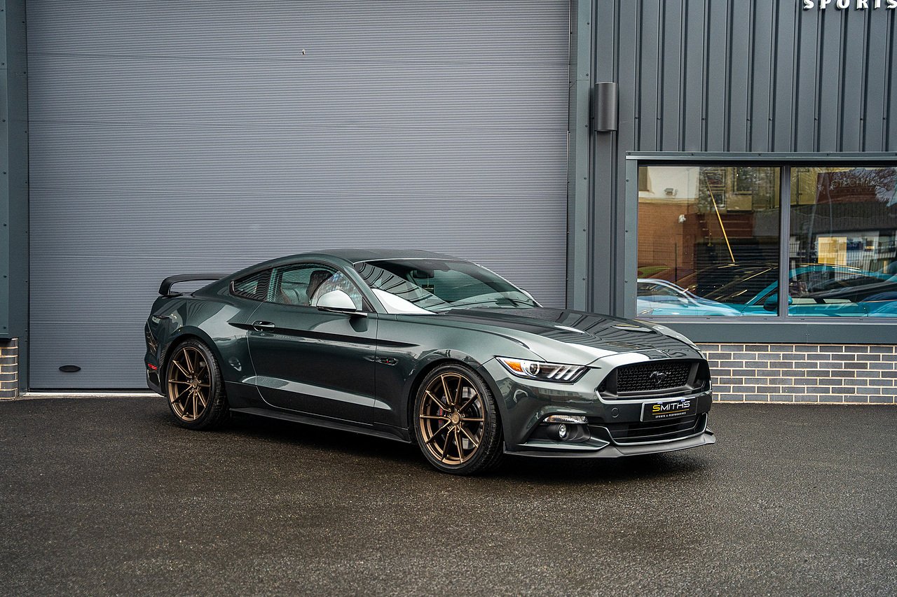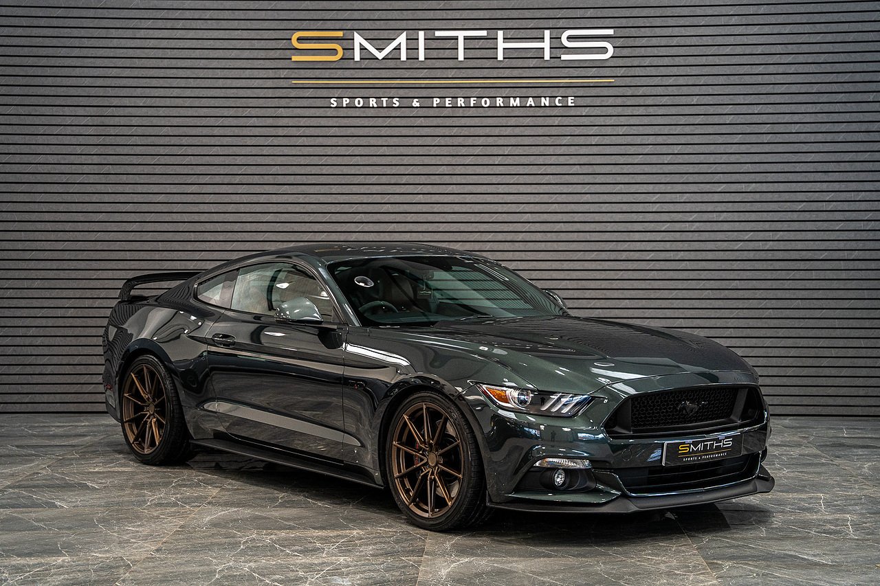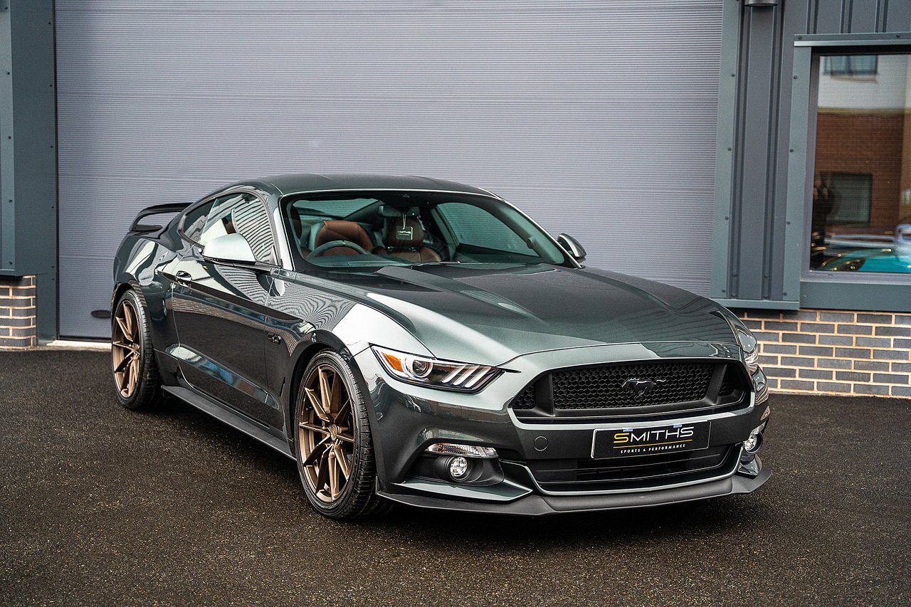Smiths Sports & Performance are pleased to offer for sale this stunning example of a 2016 Ford Mustang GT Manual finished in the lovely Guard Metallic upon a Dark Saddle Salerno Leather interior.