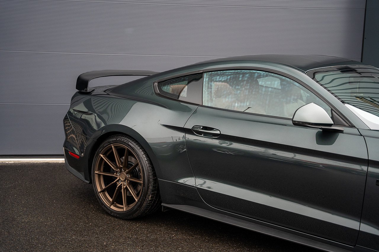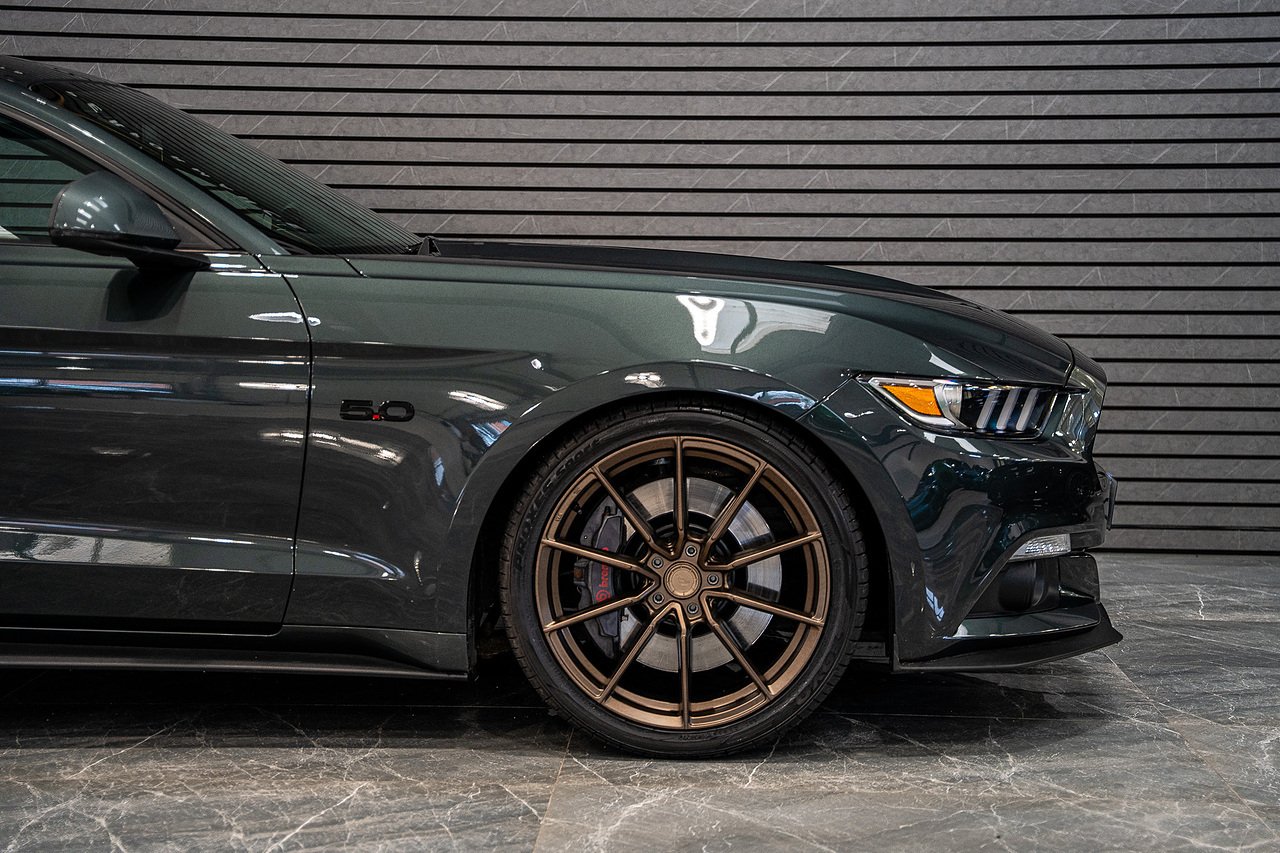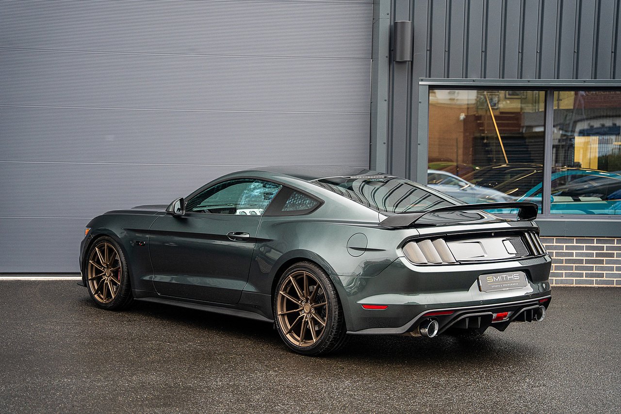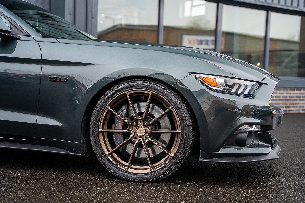 The car is tastefully modified with a set of upgraded 20" Alloys finished in Bronze. The stance of the Mustang has also been improved thanks to a set of Eibach lowering springs. Upgraded rear subframe bushes have also been installed along with front subframe support.