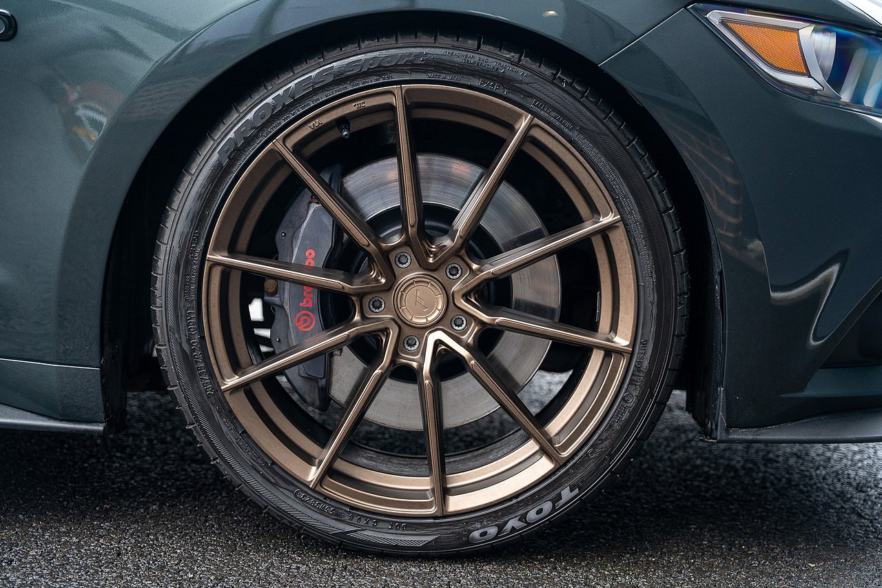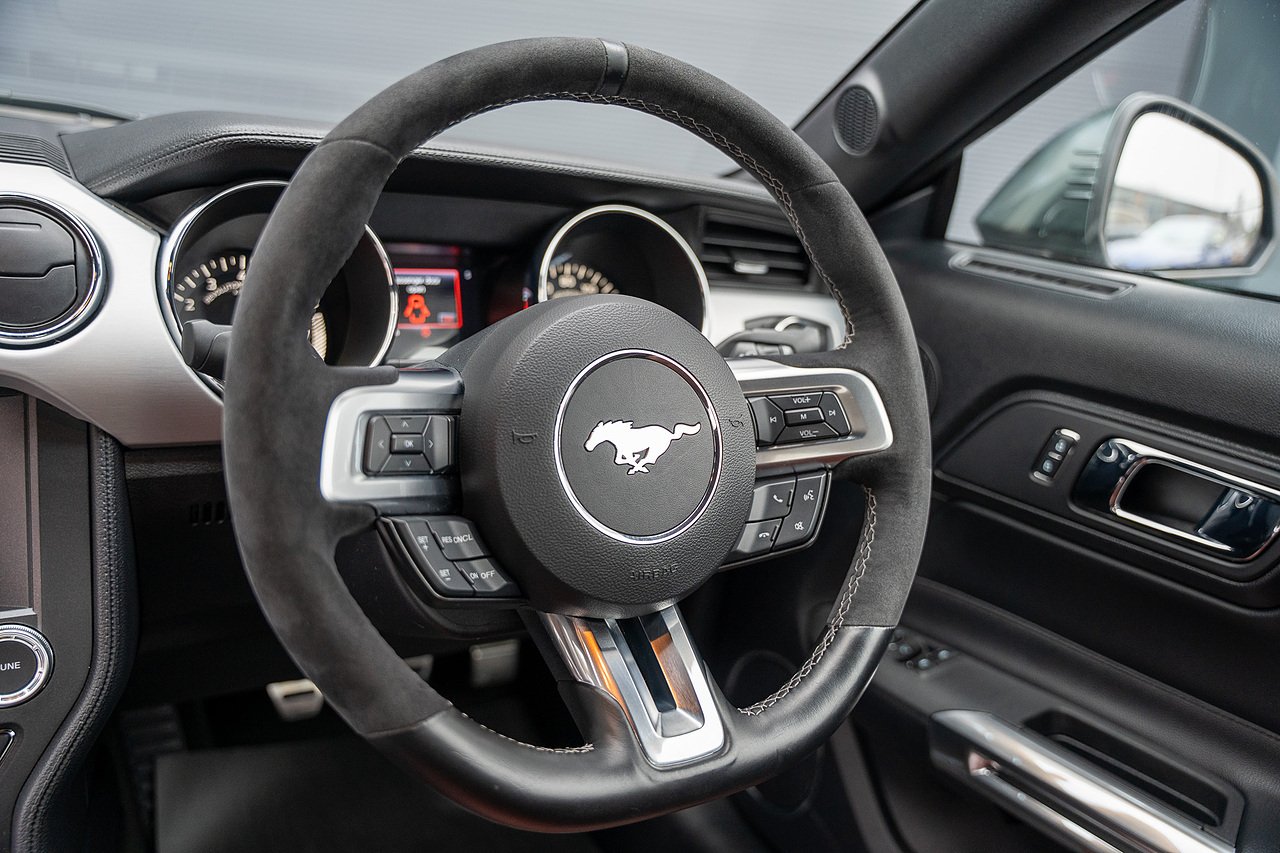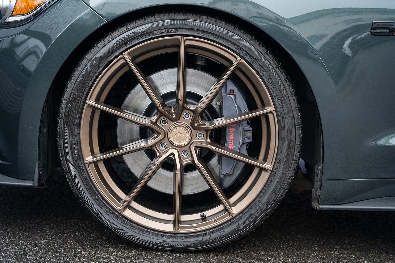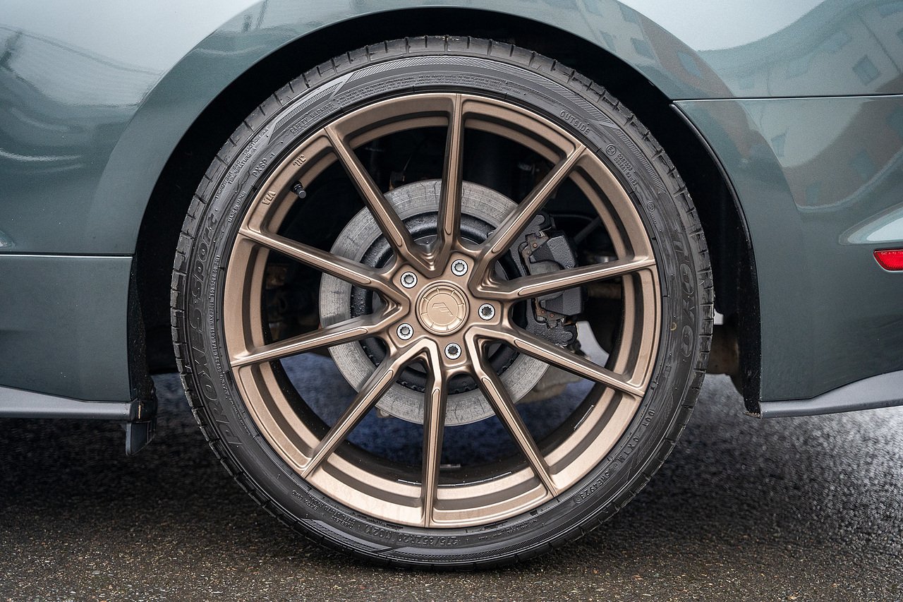 The car is tastefully modified with a set of upgraded 20" Alloys finished in Bronze. The stance of the Mustang has also been improved thanks to a set of Eibach lowering springs. Upgraded rear subframe bushes have also been installed along with front subframe support.