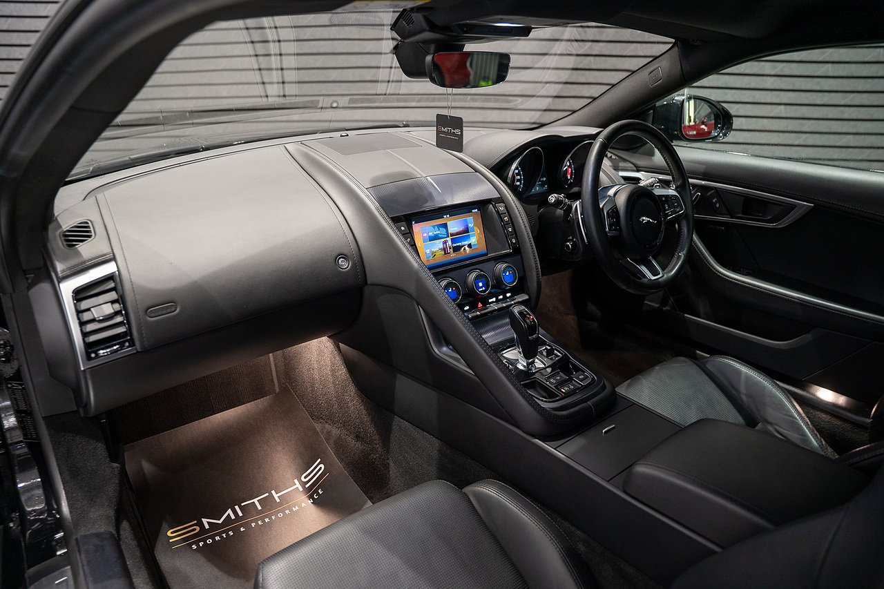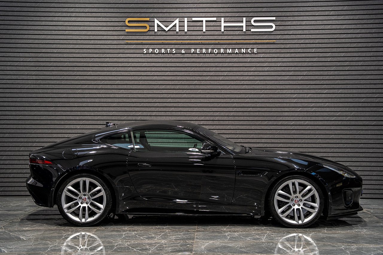 Just into stock is this stunning example of a 2017 (67) Jaguar F Type R-Dynamic Coupe finished in Santorini Black. 380ps rear wheel drive model. Excellent condition throughout with just 49,900 miles on the clock. The car boasts an excellent factory specification including Heated & Cooled Performance Memory Seats, Meridian Surround Sound, Reversing Camera, Front Parking Aid,Heated Front Windscreen and Heated Steering Wheel. Backed up by a fantastic service history record including 6 Jaguar main dealer services. As part of our used vehicle preperation the car has just had a major service including the replacement of spark plugs carried out by our in house technicians. At Smiths Sports and Performance we tailor finance packages to suit you. The options available are Hire purchase (HP) and PCP (Age of vehicle dependant). These will be quoted at the most competitive market rates currently available. Please discuss the options with one of our team and we will help find the best option to suit your needs. If you have a part exchange, our buying team will value it manually according to the current market value to achieve the best possible figures to help you into your new car. All of our vehicles come with a 3 month back to base warranty & we also offer extended warranty options for optional periods, with the ability to upgrade to access manufacturer dealerships for any potential work carried out. Every car we sell is checked that it is HPI clear and then put through a workshop inspection. We service and MOT where needed and provide warranty for your peace of mind. We are open 6 days a week by appointment only. Please call to arrange a viewing. The vehicle specification displayed may not be exact for this vehicle. Please contact us to confirm the precise specifications.
