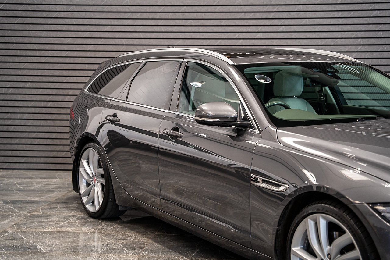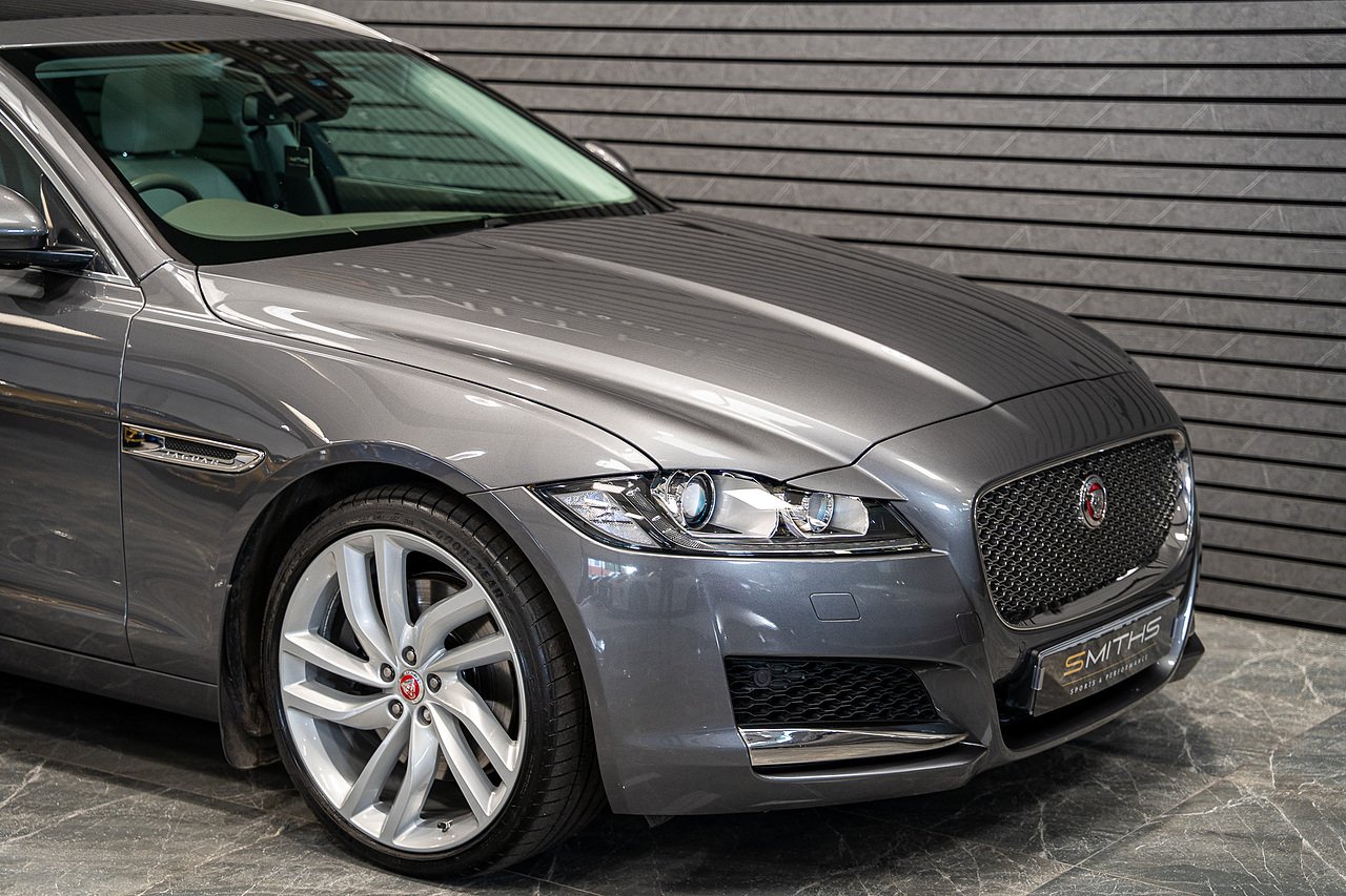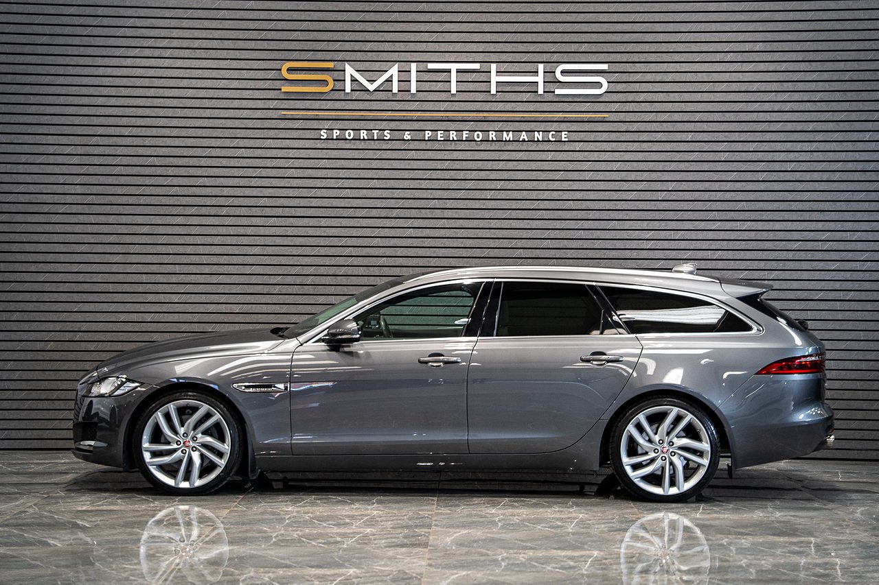 Just into stock is this stunning example of a 2017 (67) Jaguar XF D V6 Portfolio Sportbrake finished in Corris Grey. Excellent condition throughout with just 42,500 miles on the clock. The car boasts a lovely factory specifciation including the Fixed Panoramic Glass Roof, Meridian Sound, Reversing Camera, Virtual Cockpit, Rear Heated Seats & Heated Steering Wheel ++ Backed up by a fantastic service history record including 6 main dealer Jaguar services and the most recent service carried out by our in house technicians. Our service included the replacement of the Cambelt for peace of mind for many miles to come. Freshly MOT'd until September 2026. At Smiths Sports and Performance we tailor finance packages to suit you. The options available are Hire purchase (HP) and PCP (Age of vehicle dependant). These will be quoted at the most competitive market rates currently available. Please discuss the options with one of our team and we will help find the best option to suit your needs. If you have a part exchange, our buying team will value it manually according to the current market value to achieve the best possible figures to help you into your new car. All of our vehicles come with a 3 month back to base warranty & we also offer extended warranty options for optional periods, with the ability to upgrade to access manufacturer dealerships for any potential work carried out. Every car we sell is checked that it is HPI clear and then put through a workshop inspection. We service and MOT where needed and provide warranty for your peace of mind. We are open 6 days a week by appointment only. Please call to arrange a viewing. The vehicle specification displayed may not be exact for this vehicle. Please contact us to confirm the precise specifications.