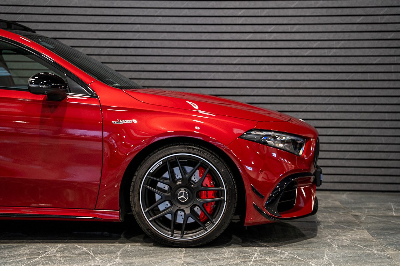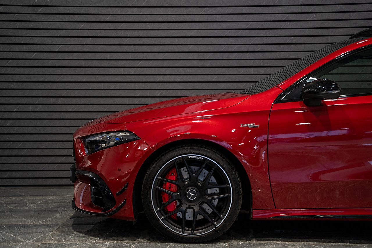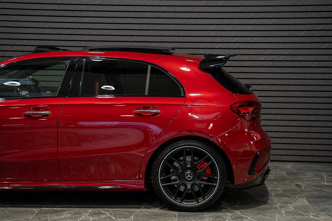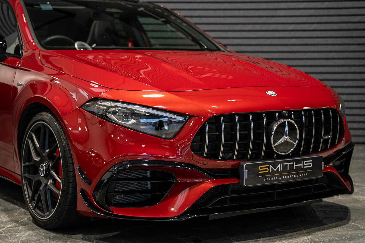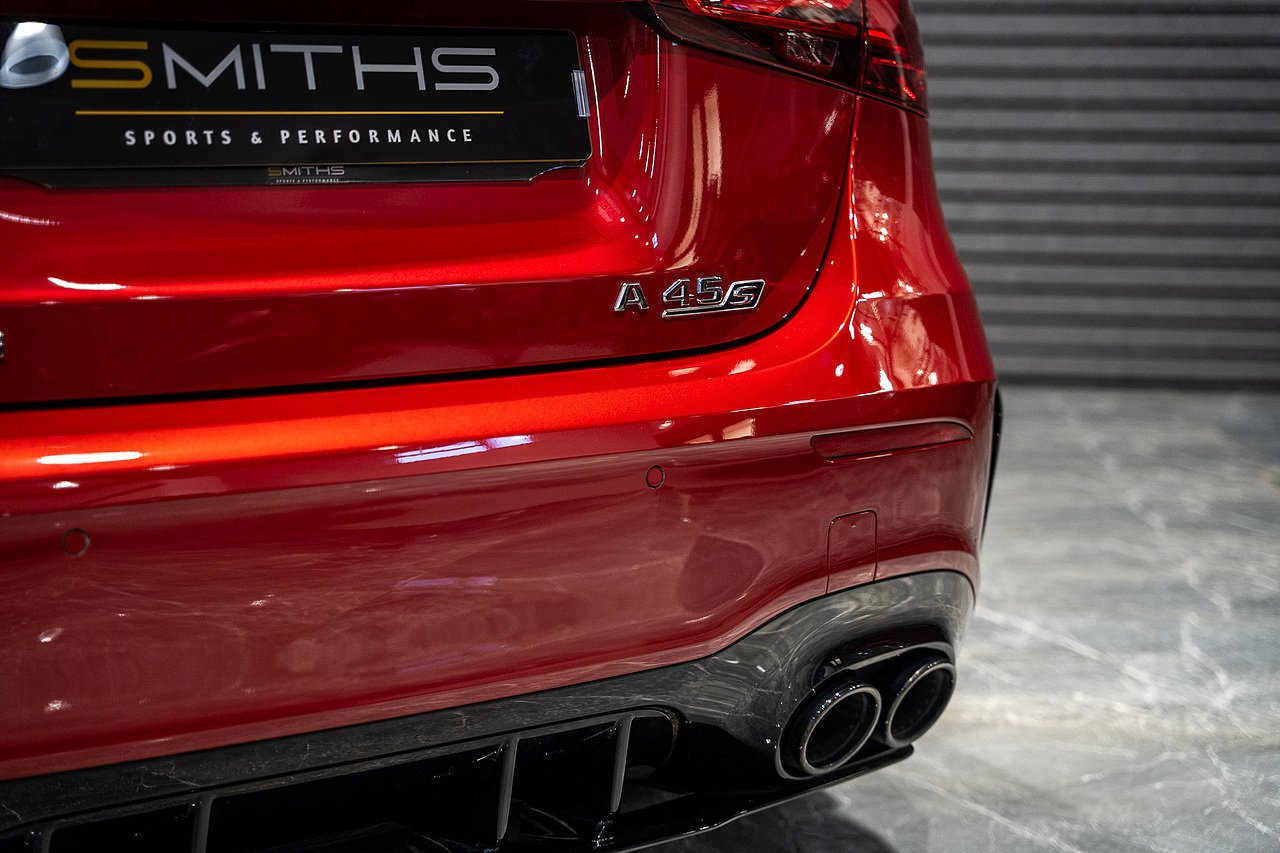 WOW! Just into stock is this stunning example of a 2023 Mercedes A45 AMG S Plus finished in Patagonia Red. 1 owner from new with just 3300 miles on the clock. Facelifted model including updated headlights and taillights, newer steering wheel and upgraded entertainment system. Factory specification includes the Sliding Panoramic Sunroof, Burmester Surround Sound, Head Up Display, 360 Cameras, Heated Memory Bucket Seats, Privacy Glass ++ The facelifted models come with the AMG Aerodynamics package including front splitter, rear diffuser and spoiler. Backed up by 2 Mercedes main dealer services for peace of mind. At Smiths Sports and Performance we tailor finance packages to suit you. The options available are Hire purchase (HP) and PCP (Age of vehicle dependant). These will be quoted at the most competitive market rates currently available. Please discuss the options with one of our team and we will help find the best option to suit your needs. If you have a part exchange, our buying team will value it manually according to the current market value to achieve the best possible figures to help you into your new car. All of our vehicles come with a 3 month back to base warranty & we also offer extended warranty options for optional periods, with the ability to upgrade to access manufacturer dealerships for any potential work carried out. Every car we sell is checked that it is HPI clear and then put through a workshop inspection. We service and MOT where needed and provide warranty for your peace of mind. We are open 6 days a week by appointment only. Please call to arrange a viewing. The vehicle specification displayed may not be exact for this vehicle. Please contact us to confirm the precise specifications.