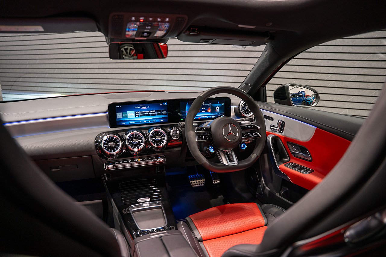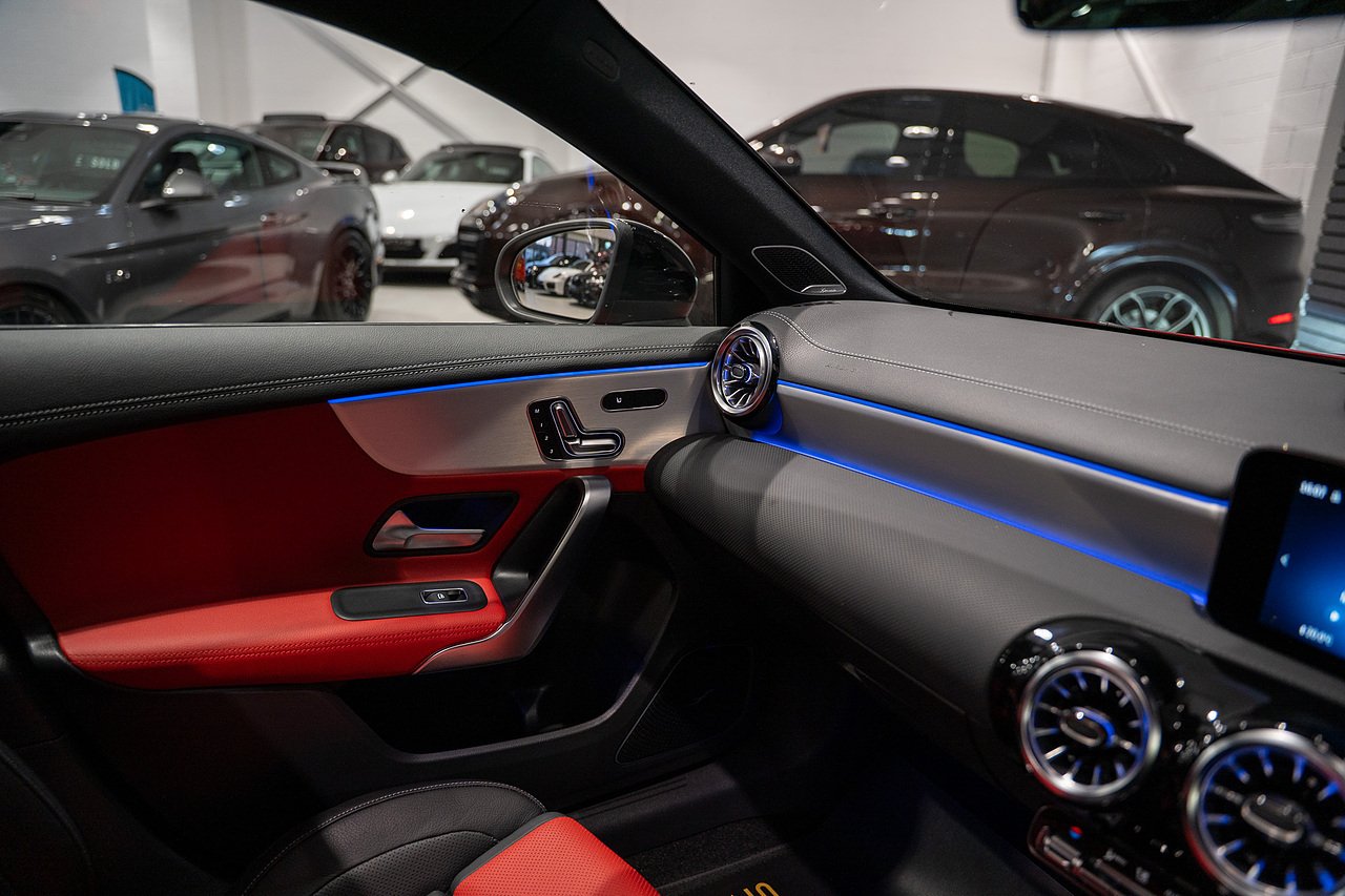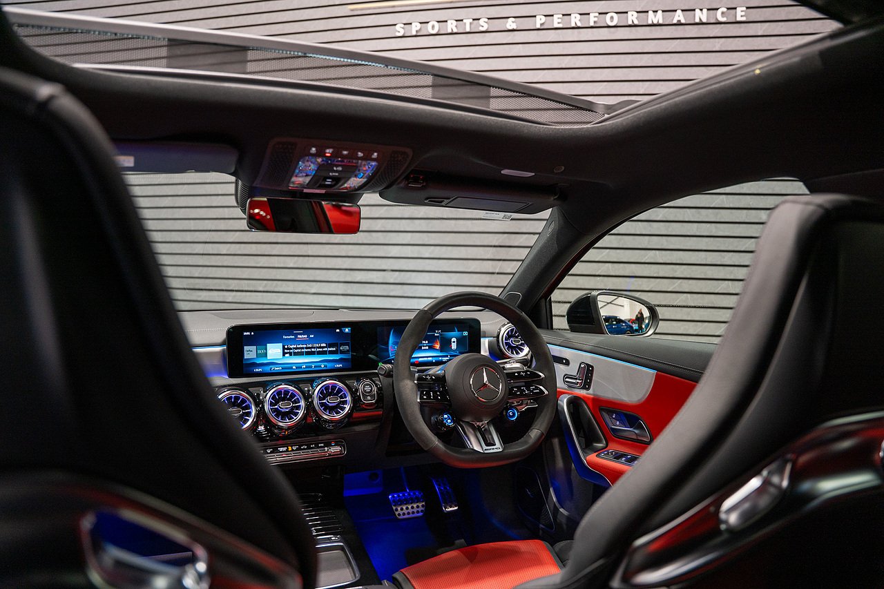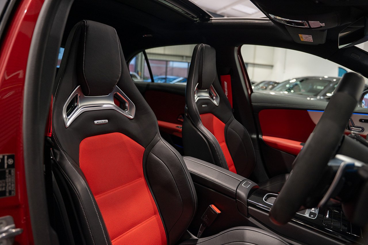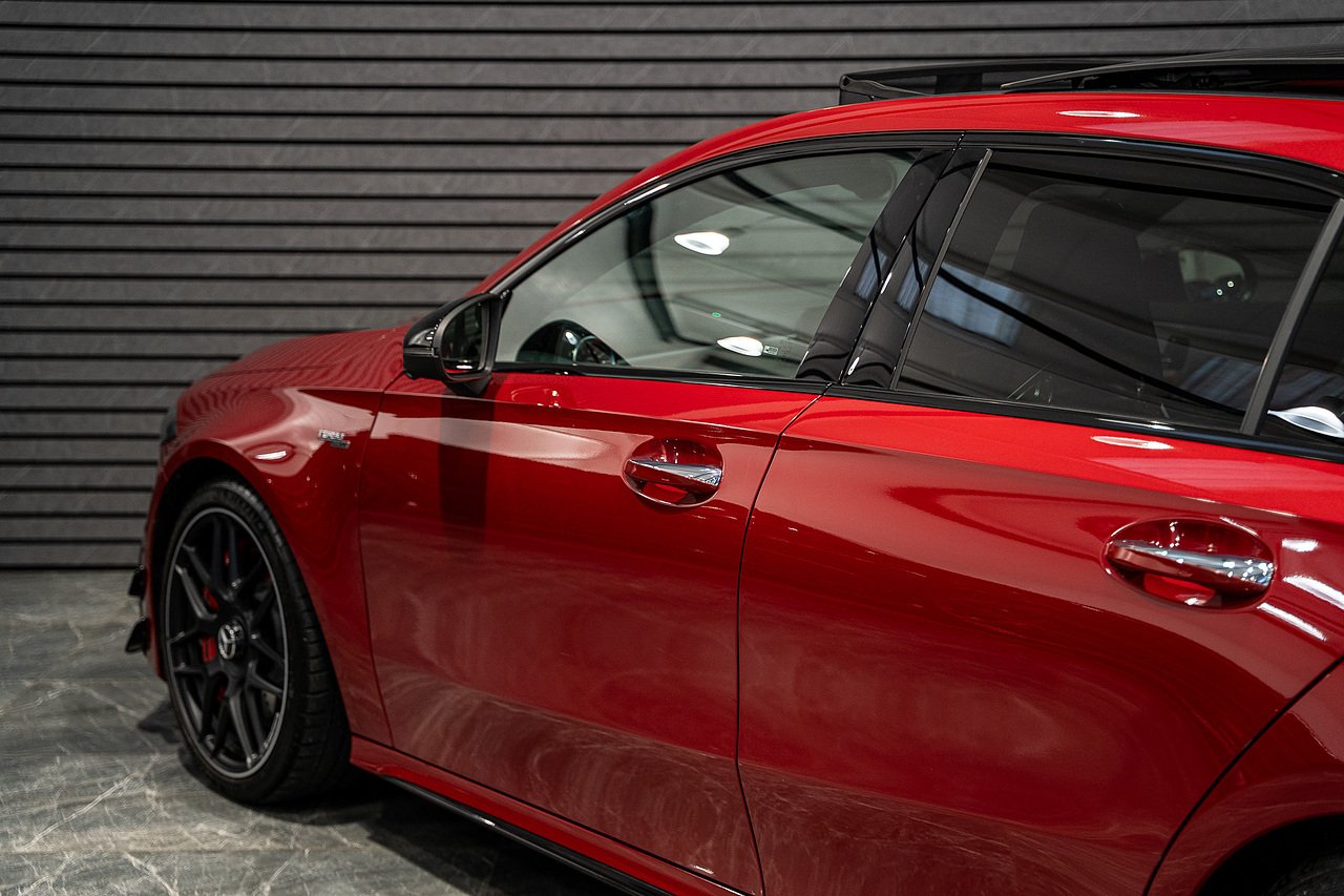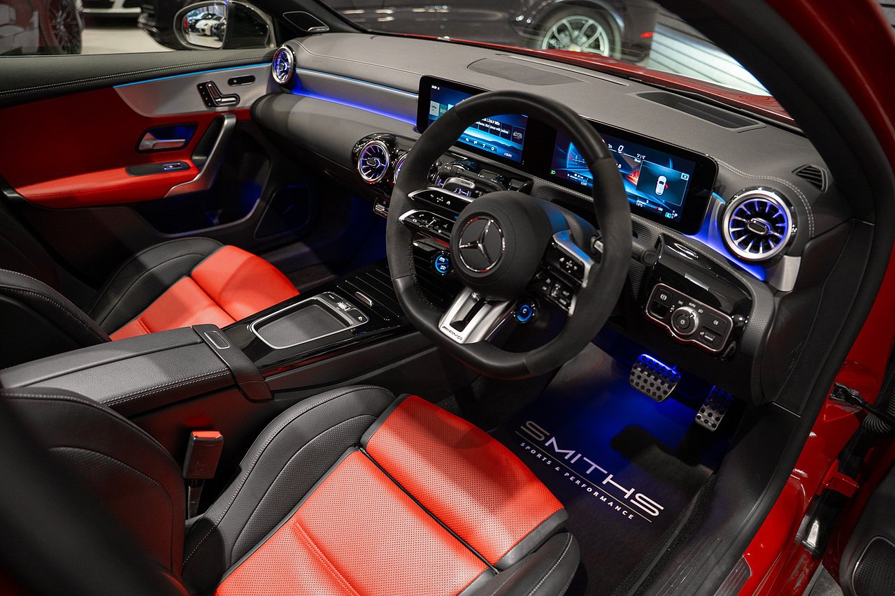 WOW! Just into stock is this stunning example of a 2023 Mercedes A45 AMG S Plus finished in Patagonia Red. 1 owner from new with just 3300 miles on the clock. Facelifted model including updated headlights and taillights, newer steering wheel and upgraded entertainment system. Factory specification includes the Sliding Panoramic Sunroof, Burmester Surround Sound, Head Up Display, 360 Cameras, Heated Memory Bucket Seats, Privacy Glass ++ The facelifted models come with the AMG Aerodynamics package including front splitter, rear diffuser and spoiler. Backed up by 2 Mercedes main dealer services for peace of mind. At Smiths Sports and Performance we tailor finance packages to suit you. The options available are Hire purchase (HP) and PCP (Age of vehicle dependant). These will be quoted at the most competitive market rates currently available. Please discuss the options with one of our team and we will help find the best option to suit your needs. If you have a part exchange, our buying team will value it manually according to the current market value to achieve the best possible figures to help you into your new car. All of our vehicles come with a 3 month back to base warranty & we also offer extended warranty options for optional periods, with the ability to upgrade to access manufacturer dealerships for any potential work carried out. Every car we sell is checked that it is HPI clear and then put through a workshop inspection. We service and MOT where needed and provide warranty for your peace of mind. We are open 6 days a week by appointment only. Please call to arrange a viewing. The vehicle specification displayed may not be exact for this vehicle. Please contact us to confirm the precise specifications.