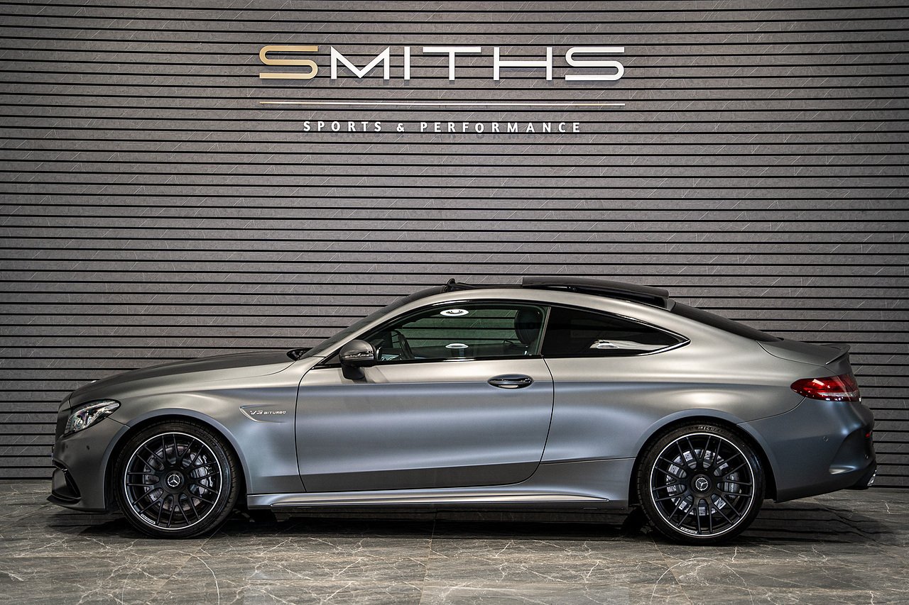 WOW!! Just into stock is this stunning example of a 2018 Mercedes C63 Coupe (Premium) finished in Selenite Grey Magno. Excellent condition throughout with just 39,000 miles on the clock. Being the Premium model the car comes with a fantastic specification. Options include the Sliding Panoramic Sunroof, Burmester Sound, 360 Cameras, 19/20" AMG Alloys, Privacy Glass ++ Backed up by an excellent service record comprising of Mercedes and Mercedes specialist. Mot'd until October 2026 for peace of mind. At Smiths Sports and Performance we tailor finance packages to suit you. The options available are Hire purchase (HP) and PCP (Age of vehicle dependant). These will be quoted at the most competitive market rates currently available. Please discuss the options with one of our team and we will help find the best option to suit your needs. If you have a part exchange, our buying team will value it manually according to the current market value to achieve the best possible figures to help you into your new car. All of our vehicles come with a 3 month back to base warranty & we also offer extended warranty options for optional periods, with the ability to upgrade to access manufacturer dealerships for any potential work carried out. Every car we sell is checked that it is HPI clear and then put through a workshop inspection. We service and MOT where needed and provide warranty for your peace of mind. We are open 6 days a week by appointment only. Please call to arrange a viewing. The vehicle specification displayed may not be exact for this vehicle. Please contact us to confirm the precise specifications.
