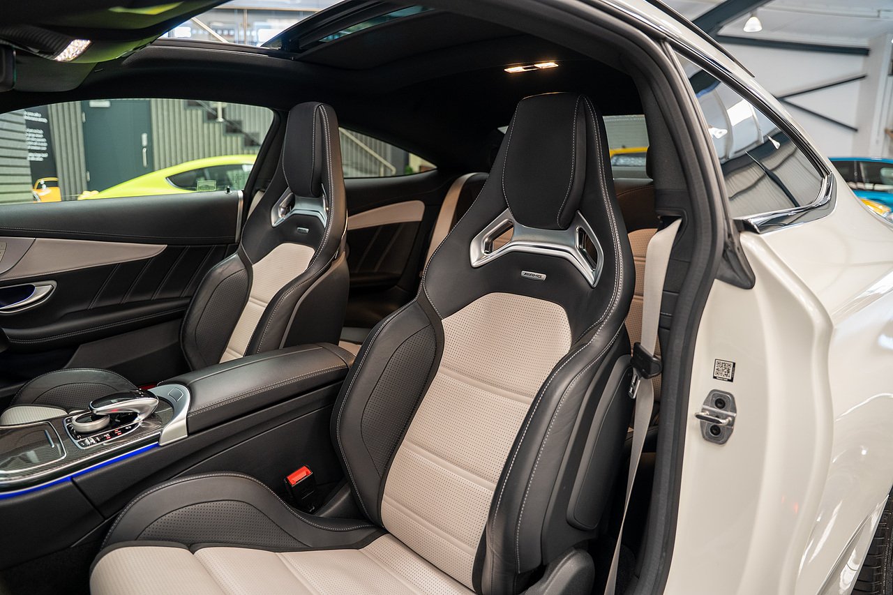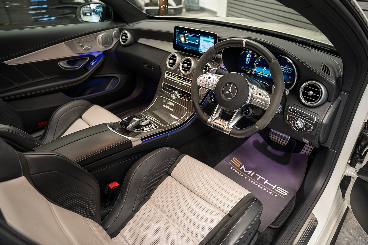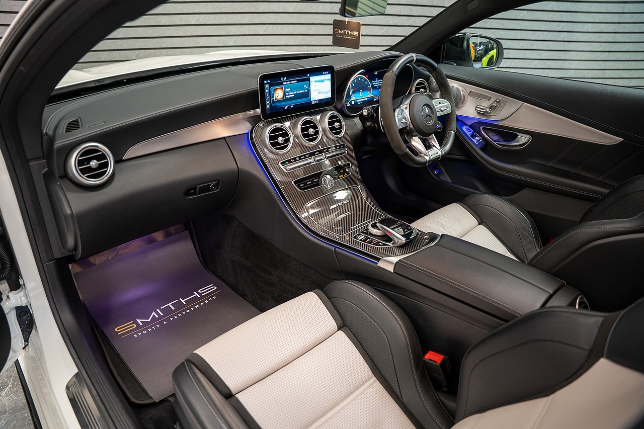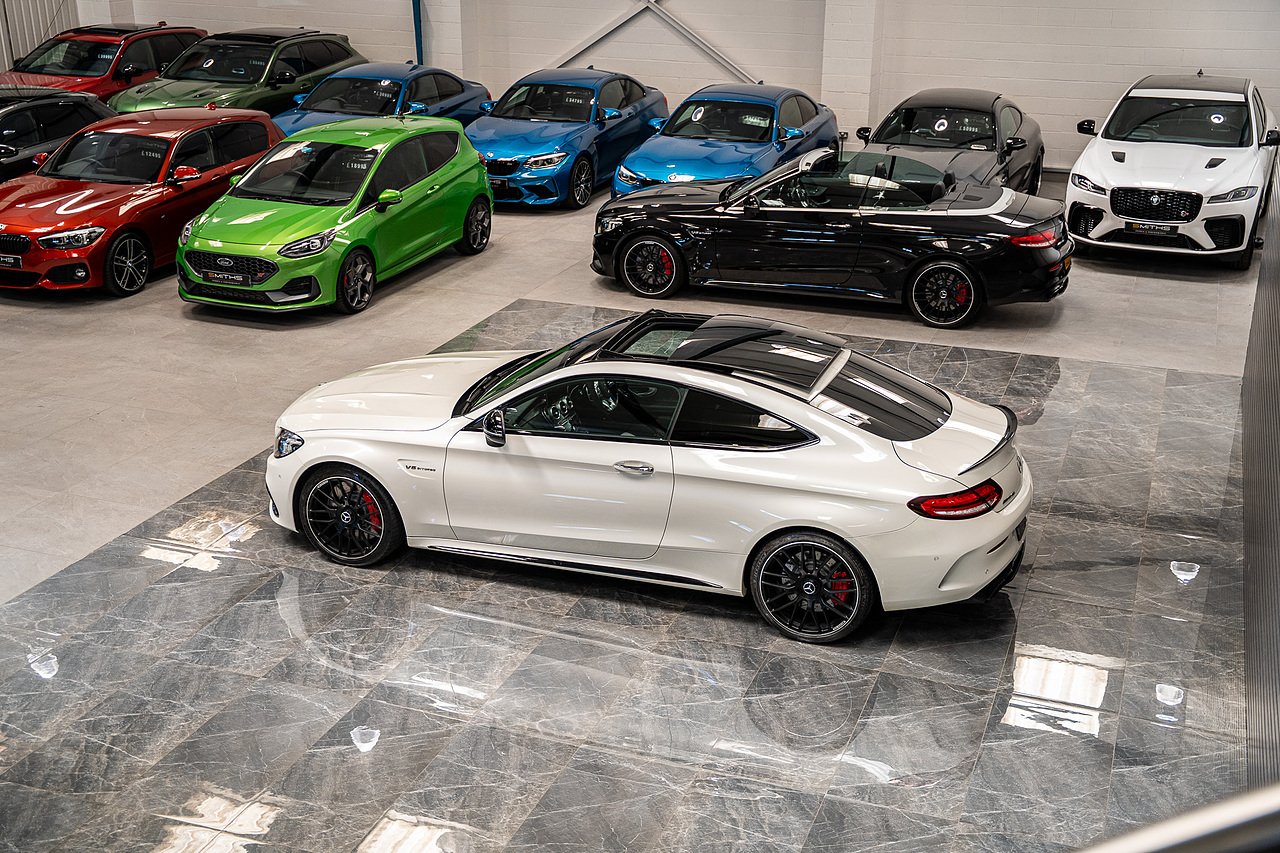 Just into stock is this lovely example of 2021 Mercedes Benz C63 AMG S Night Edition Premium Plus, finished in Diamond White Metallic. With just 37,000 miles on the clock this coupe comes with a Full Mercedes Benz Service History Record & MOT valid until June 2026. As a Premium Plus model, factory specification includes the 19" AMG Forged Alloy Wheels Cross Spoke Design, finished in matt black, giving the car a purposeful, stealthy stance. Also included in the spec is the Driving Assistance Package which entails advanced safety systems like Active Distance Assist DISTRONIC & Active Blind Spot Assist, whilst the Heads Up Display projects essential driving info directly onto the windscreen for minimal distraction. The Panoramic Electric Glass Sunroof opens up the cabin allowing light & space, whilst the interior trim is finished in Carbon Fibre. Fully adjustable heated AMG Performance Seats are finished to a premium standard, along with the Burmester Surround Sound System which gives crystal clear audio clarity. A 360 degree camera gives a full perimeter view for effortless parking & tight manoeuvres. This C63 AMG S is the ultimate sports coupe with a thunderous V8 soundtrack, aggressive design & a refined cabin packed with technology & luxury. With a perfect service pedigree & high factory spec, this car is ready for its next enthusiast owner. At Smiths Sports & Performance, we offer flexible finance options to suit your needs, including Hire Purchase (HP) & PCP (depending on the vehicle’s age), all at competitive rates. Talk to our team to find the best plan for you. If you have a part exchange, our team will manually value it based on current market rates to get you the best deal. All of our cars come with a 3 month back to base warranty & we also offer extended warranties starting at 12 months through to 48 months, with options to upgrade claim limits & labour rates if needed. Every car is HPI clear, fully inspected in our workshop & serviced or MOT’d where required, all for your peace of mind. We’re open 6 days a week by appointment only. Call us to book a viewing. Please note: vehicle specs listed may not be exact, contact us to confirm details.