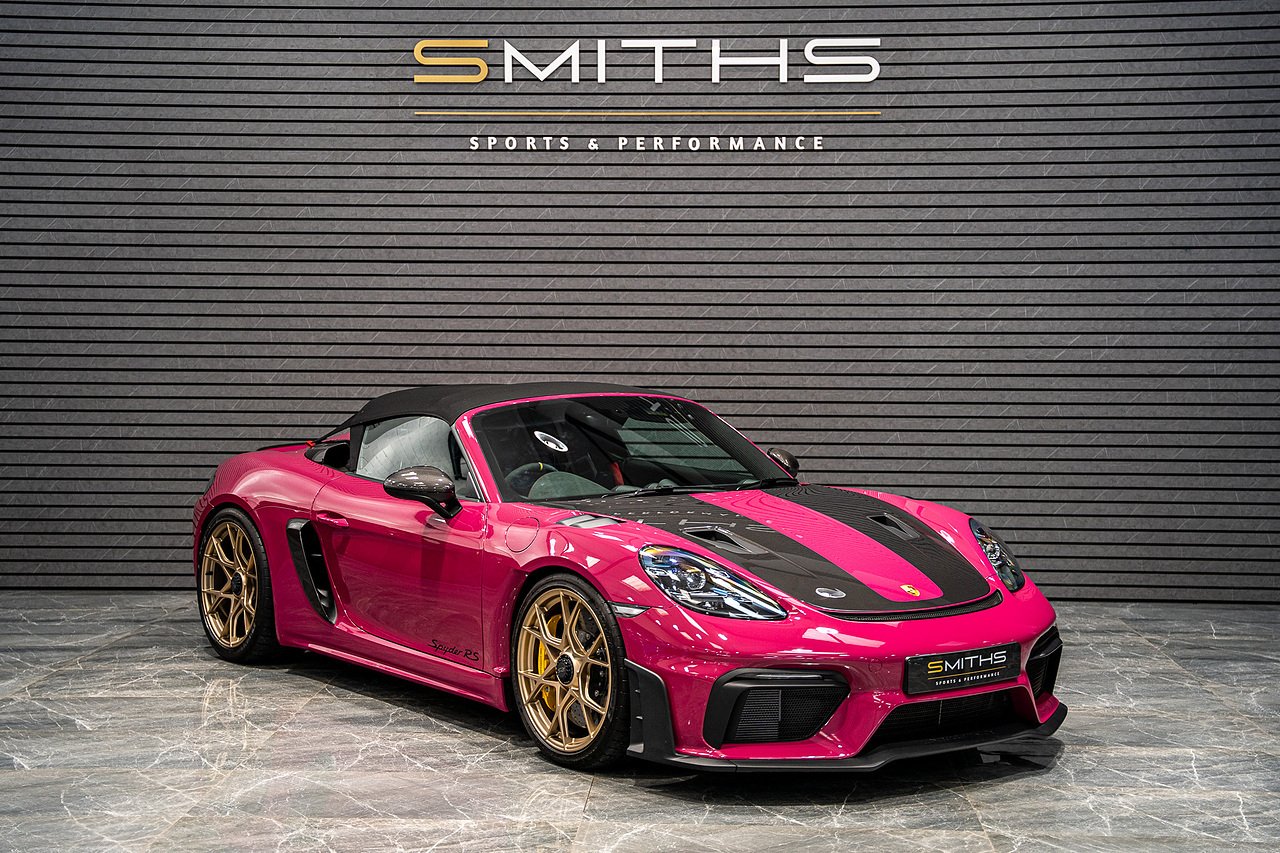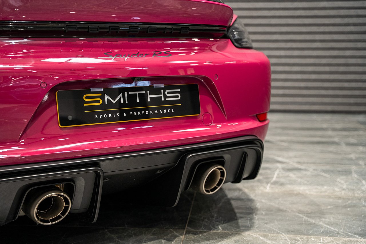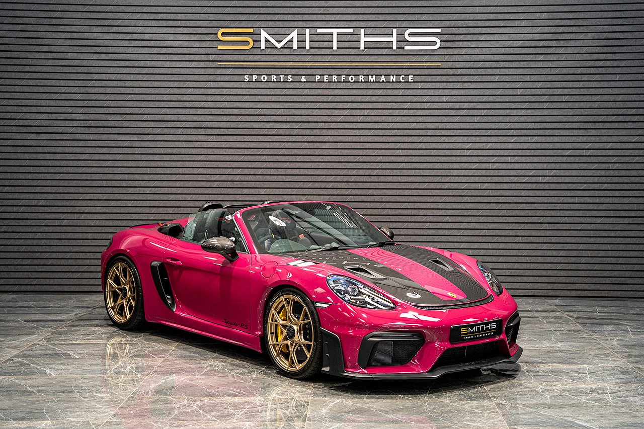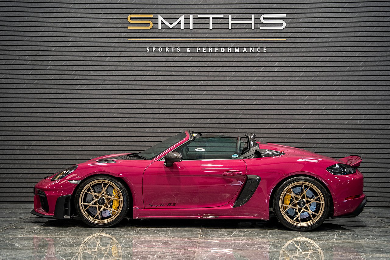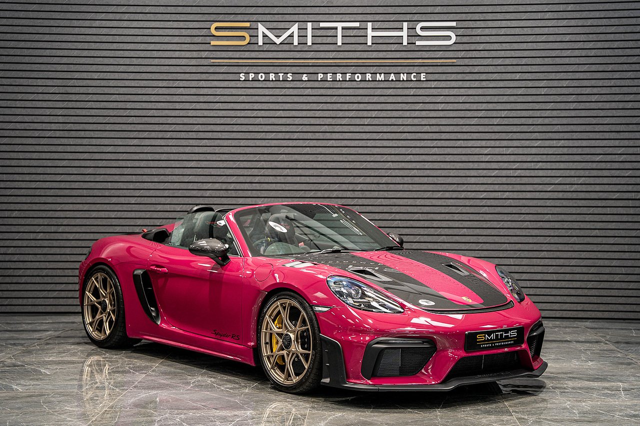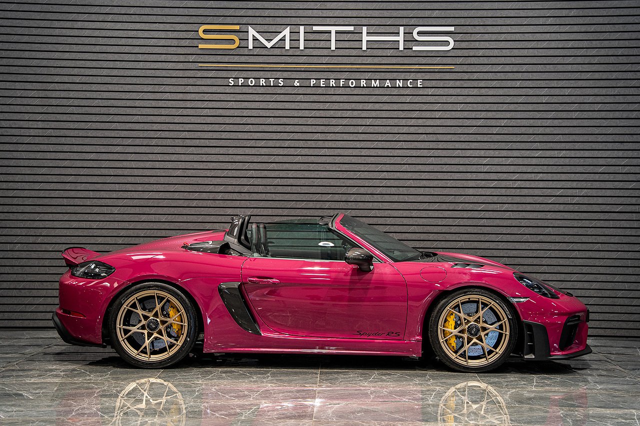 Smiths Sports & Performance are pleased to offer this 1 owner - as new Porsche 718 Spyder 4.0 RS finished in Ruby Star Neo with a contrasting Black-Carmine Red interior.