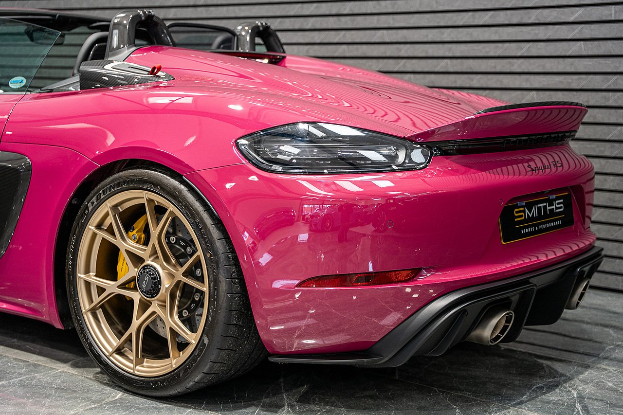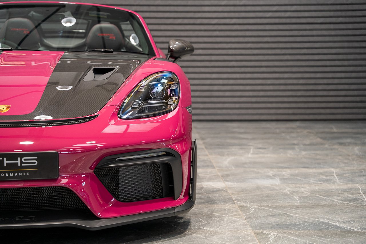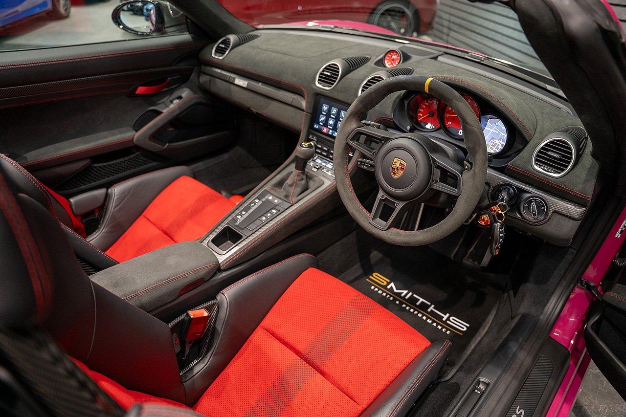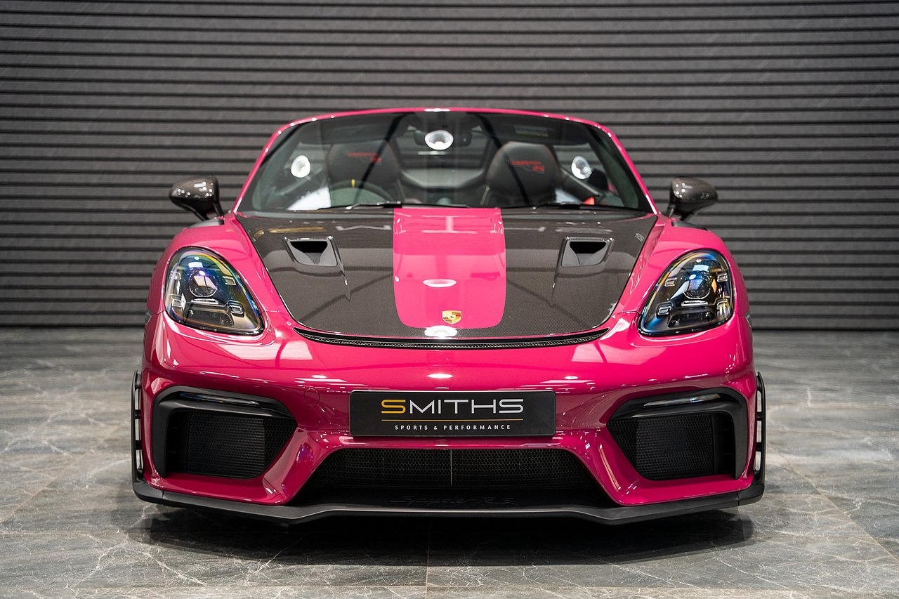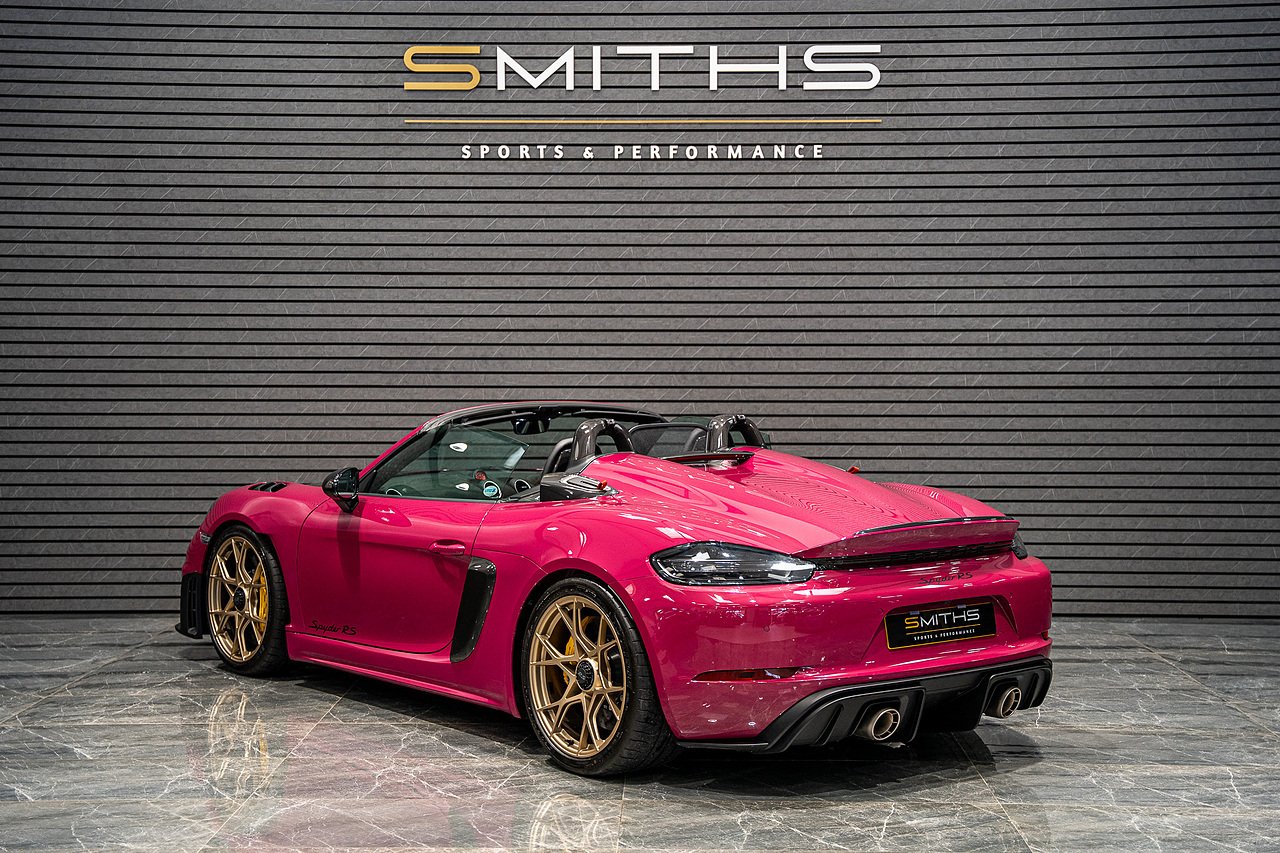 Smiths Sports & Performance are pleased to offer this 1 owner - as new Porsche 718 Spyder 4.0 RS finished in Ruby Star Neo with a contrasting Black-Carmine Red interior.