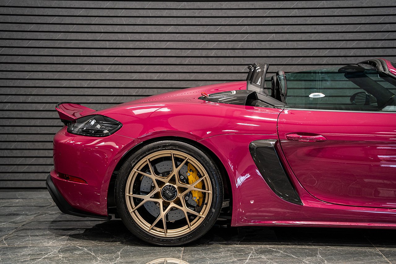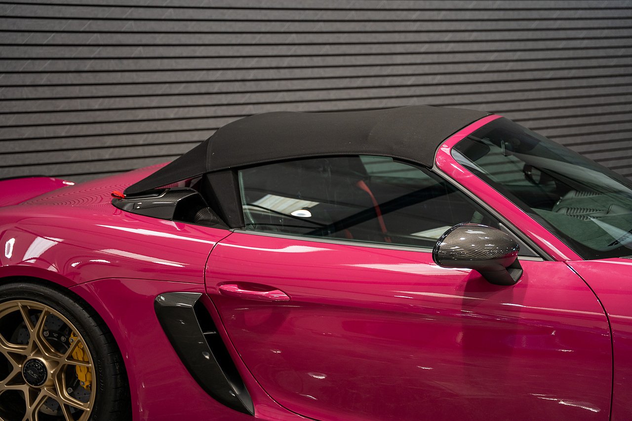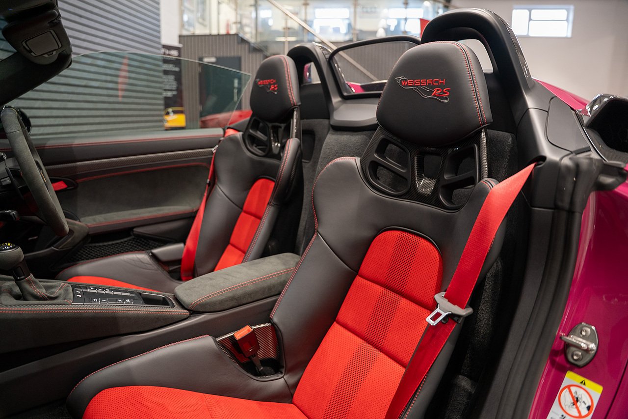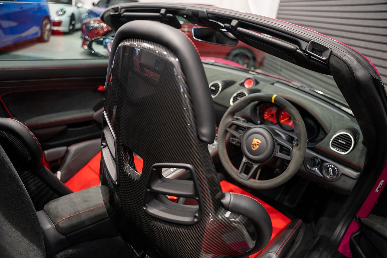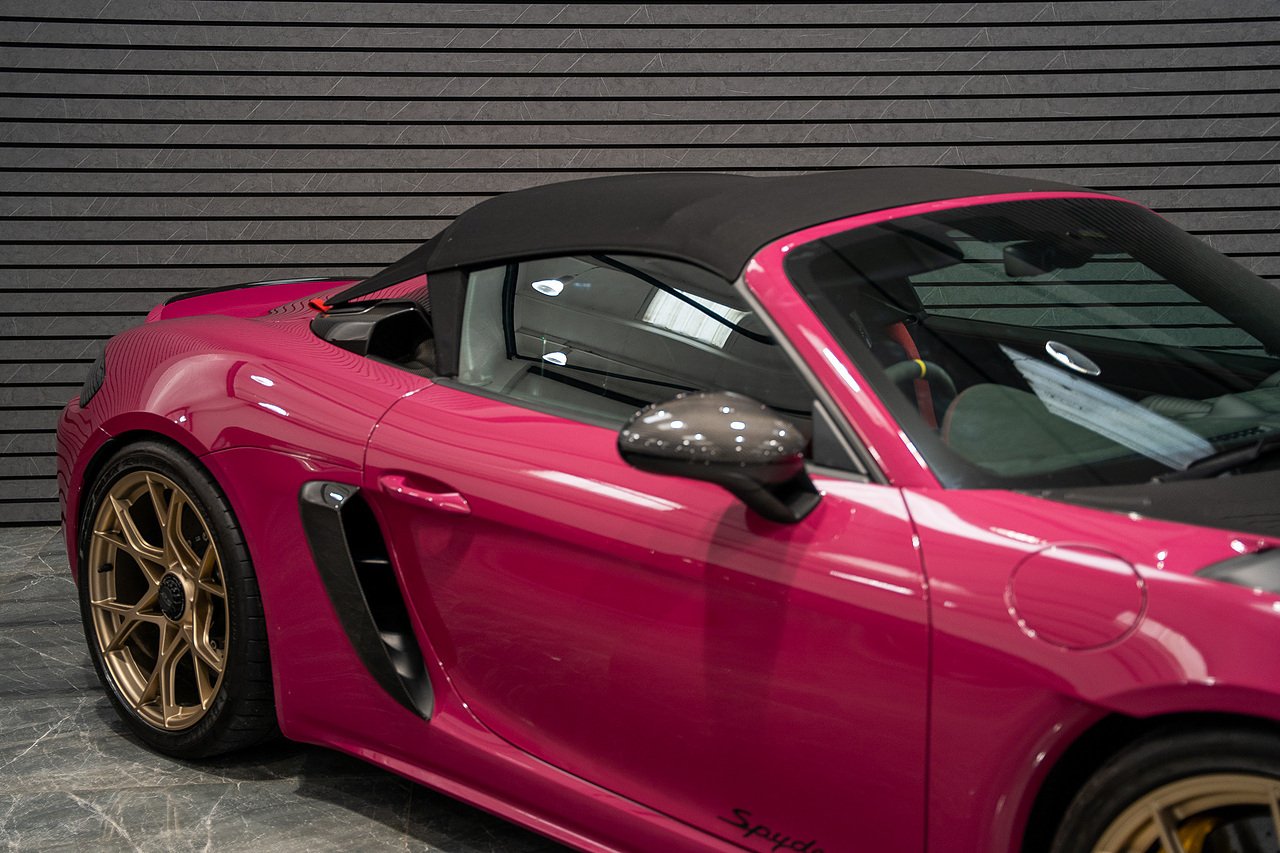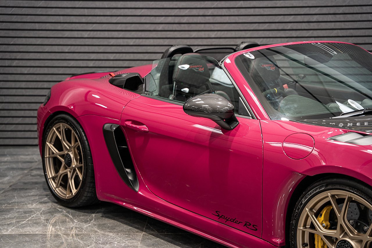 Smiths Sports & Performance are pleased to offer this 1 owner - as new Porsche 718 Spyder 4.0 RS finished in Ruby Star Neo with a contrasting Black-Carmine Red interior.