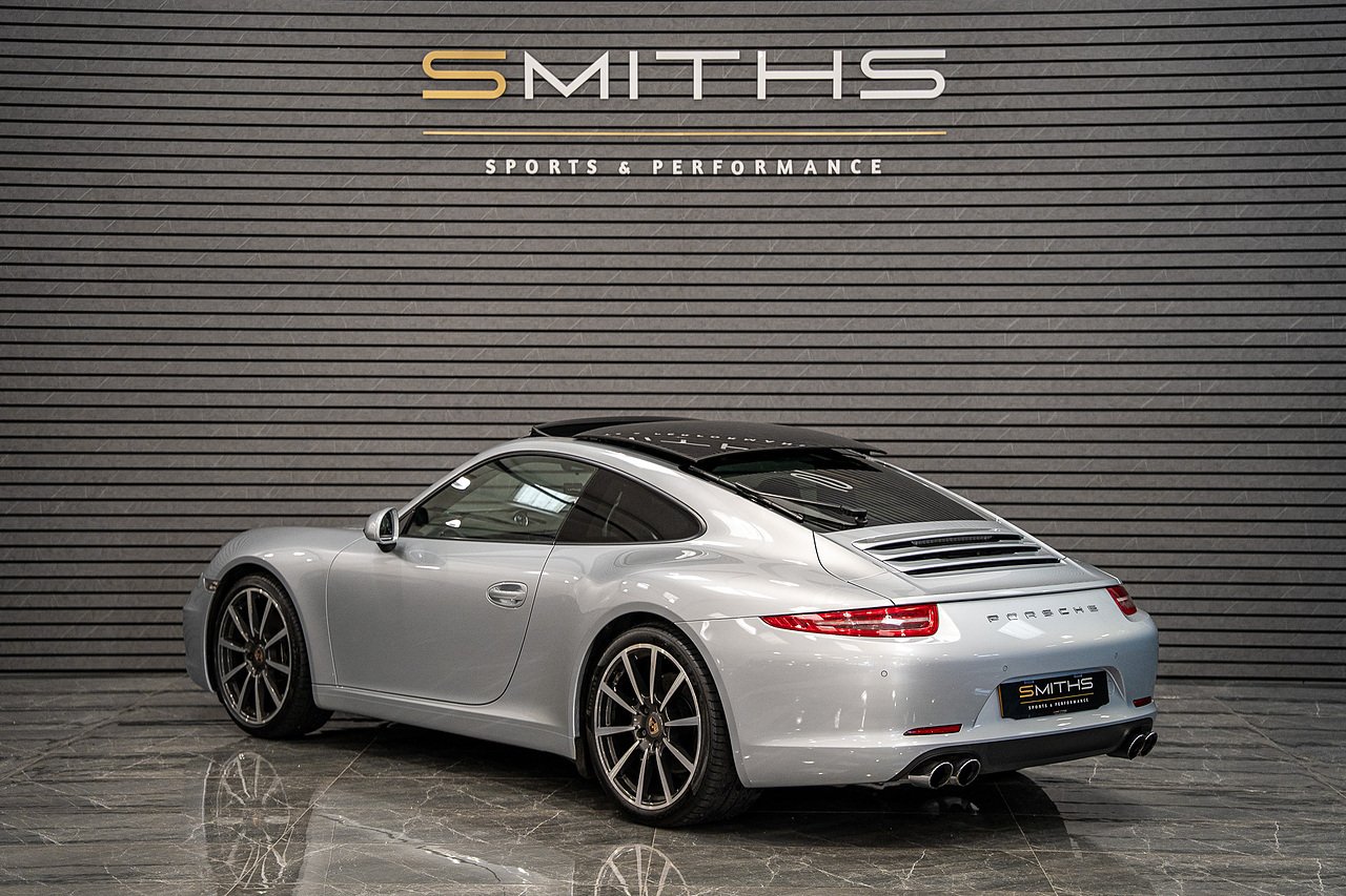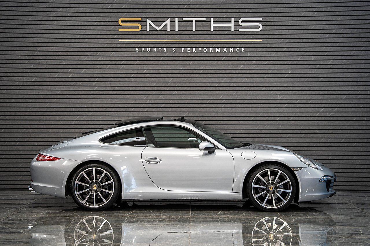 Smiths Sports & Performance are pleased to offer for sale this stuning example of a 2013 (63) Porsche 911 Carrera Coupe finished in Rhodium Silver. Fantastic condition throughout with just 25,000 miles on the clock and 1 owner from new!