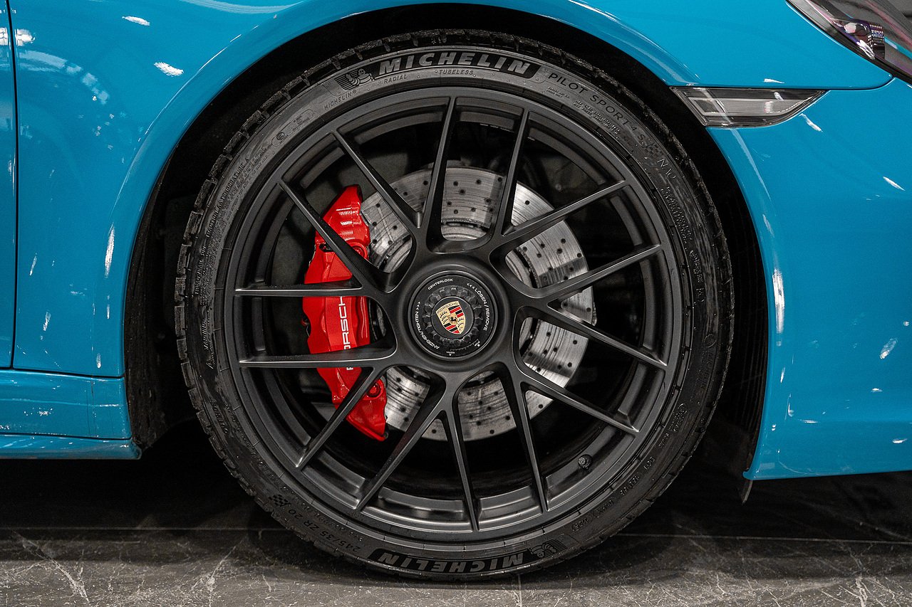 The GTS comes standard with 20" 911 Turbo S Forged Alloys in Satin Black, Sports Exhaust System, PASM Sports Suspension - 20mm Lower and Sport Chrono Package with Mode Switch.